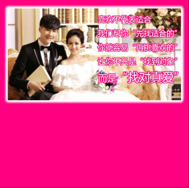 我们从1994年起,就在媒体上做公益婚恋,推广“先找适合的,再挑喜欢的”正确婚恋交友观念。所以,我们为20~40岁单身男女设置两岸爱心“鹊桥会”、为40岁以上中老年人婚恋设置两岸爱心“晚情会”、特别为残疾人婚恋设置两岸爱心“无缺会”,并为高端顶级会员量身定制“星恋侠”猎婚服务,是两岸独一无二的公益婚恋服务平台。